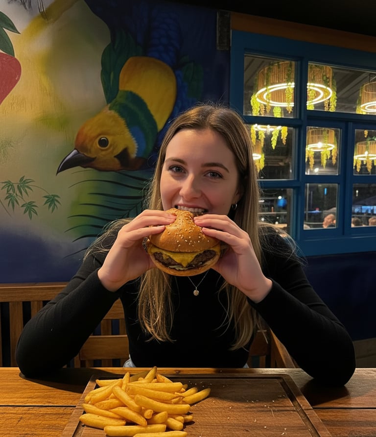 La calidad de La Martina se lleva también a la comida casual. Nuestras HAMBURGUESAS son creaciones artesanales, no comida rápida genérica. Usamos pan brioche de papa y carne seleccionada para garantizar una experiencia jugosa.