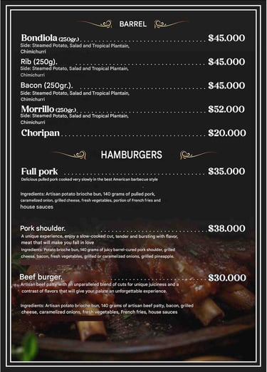 The identity of our cuisine lies in fire and patience. Barrel cooking is an art, not a fad. We use very slow cooking to guarantee tender and juicy meats.
