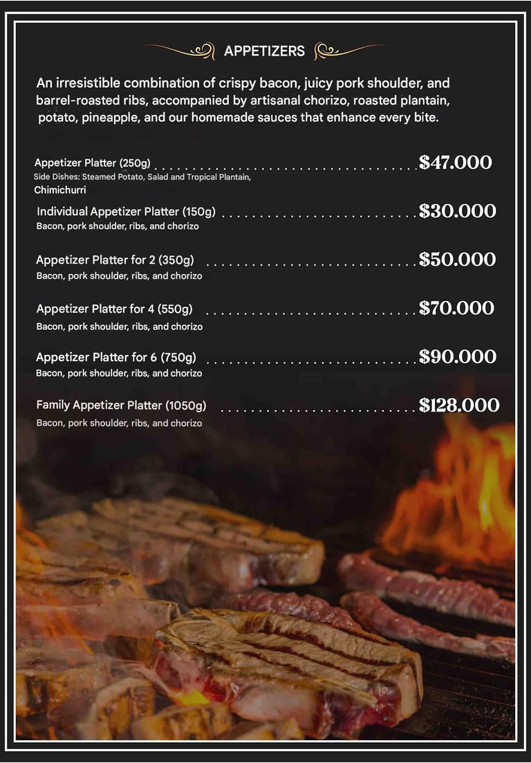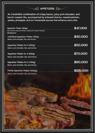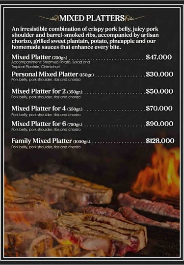 Our pork specialties are the most sought after: Bondiola, Ribs, and Panceta. For beef lovers, the barrel-cooked Morrillo is an experience of ultimate tenderness. All these cuts are served with our classic sides and chimichurri.