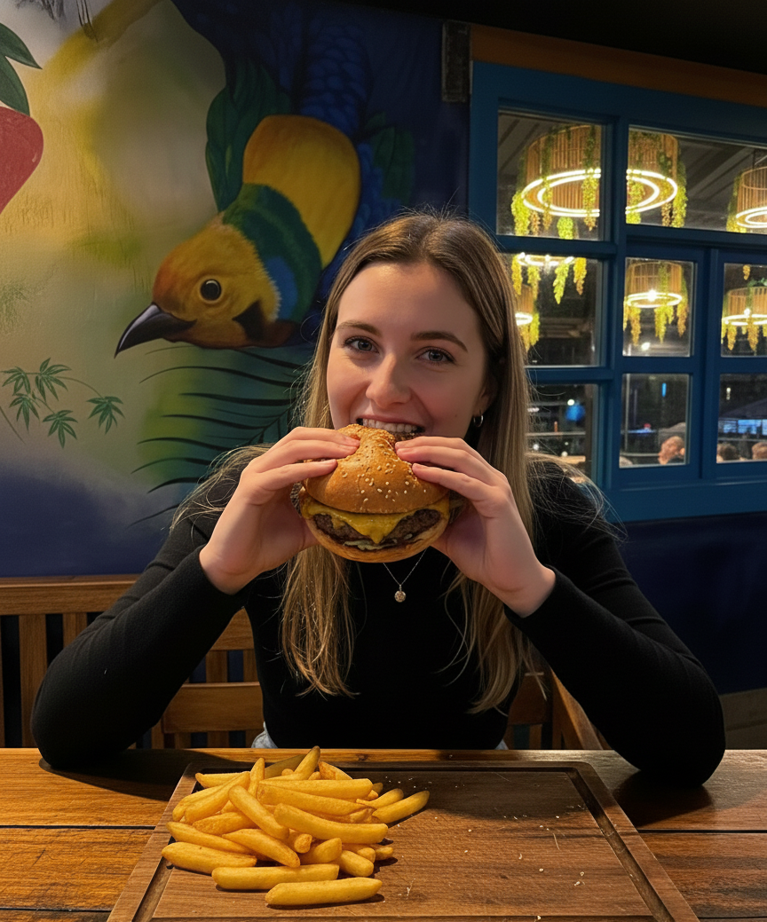 La calidad de La Martina se lleva también a la comida casual. Nuestras HAMBURGUESAS son creaciones artesanales, no comida rápida genérica. Usamos pan brioche de papa y carne seleccionada para garantizar una experiencia jugosa.