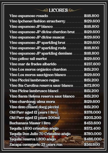 Nuestra oferta culinaria es rica y variada, diseñada para satisfacer todos los paladares. Mantenemos los estándares de calidad que nos han hecho famosos.