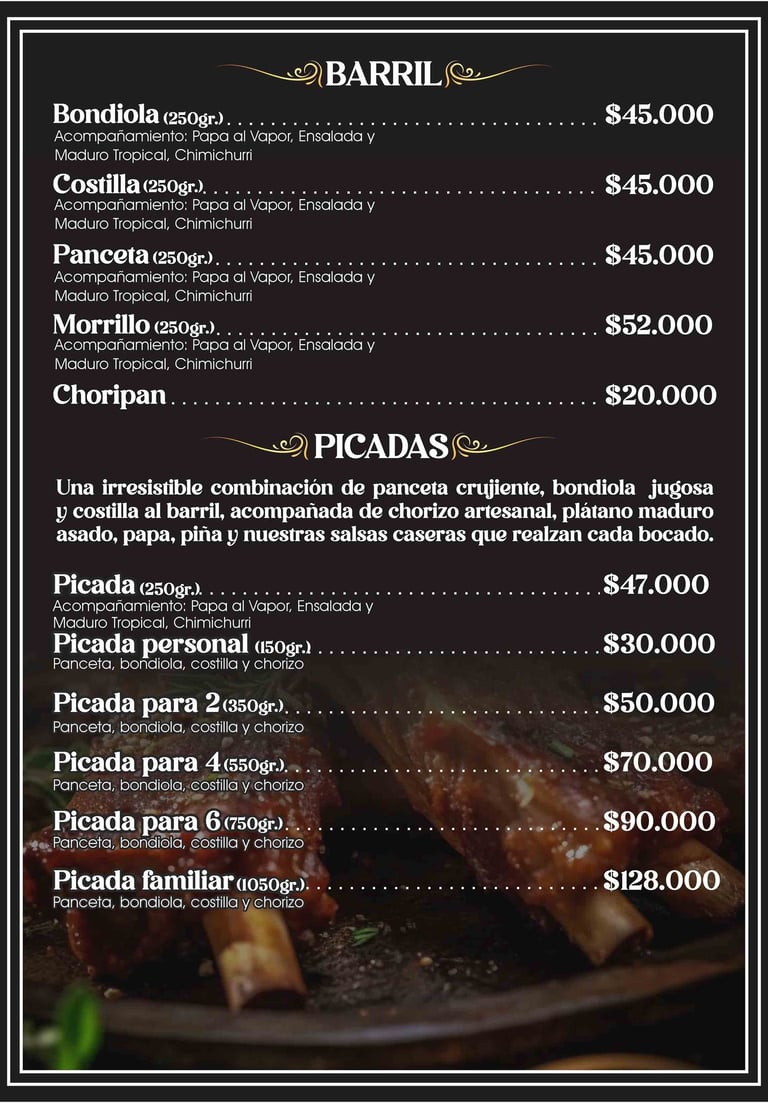 Nuestras especialidades de cerdo son las más buscadas: la Bondiola , la Costilla y la Panzeta. Para los amantes de la res, el Morrillo al barril es una experiencia de máxima ternura. Todos estos cortes se sirven con nuestros acompañamientos clásicos y chimichurri.
